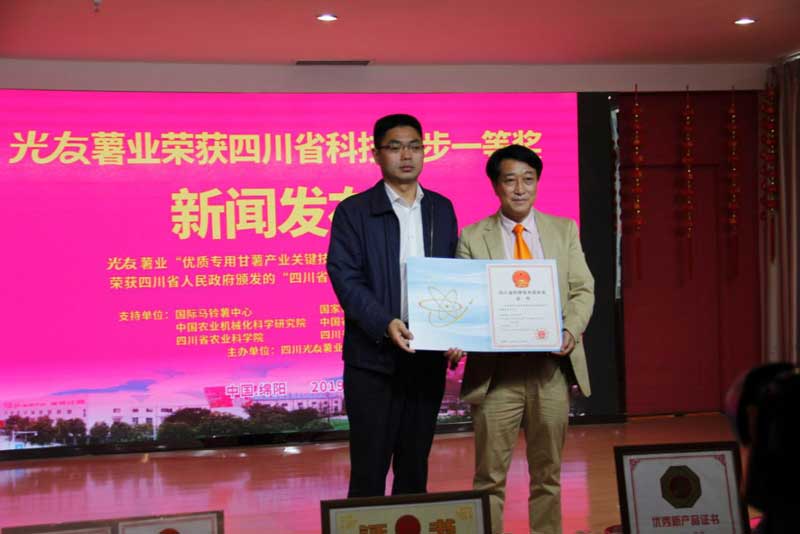 四川光友薯業(yè)有限公司(簡(jiǎn)稱:光友薯業(yè))成立于1992年10月18日,是一家以薯類深加工為主的健康產(chǎn)業(yè)型、高新技術(shù)型民營(yíng)企業(yè)。光友薯業(yè)自1992年來(lái),不忘初心,專做薯業(yè),辛勤耕耘,在中國(guó)乃至世界把紅薯、馬鈴薯做成一大健康主食產(chǎn)業(yè),先后帶動(dòng)薯區(qū)60萬(wàn)薯農(nóng)脫貧致富,發(fā)展成為全球行業(yè)知名企業(yè)。連續(xù)九屆被國(guó)家八部委評(píng)定為“農(nóng)業(yè)產(chǎn)業(yè)化國(guó)家重點(diǎn)龍頭企業(yè)”,同時(shí)獲得“國(guó)家高新技術(shù)企業(yè)”、“全國(guó)主食加工業(yè)示范企業(yè)”、“全國(guó)馬鈴薯主食化產(chǎn)業(yè)十大領(lǐng)軍企業(yè)”、“全國(guó)守合同重信用企業(yè)” 、“推進(jìn)甘薯產(chǎn)業(yè)發(fā)展突出貢獻(xiàn)獎(jiǎng)”、“四川省科學(xué)技術(shù)進(jìn)步獎(jiǎng)一等獎(jiǎng)”等殊榮。光友薯業(yè)獲中國(guó)專利70余項(xiàng),光友方便粉絲獲得美國(guó)FDA認(rèn)證,成為出口美國(guó)、日本免檢薯類健康主食。