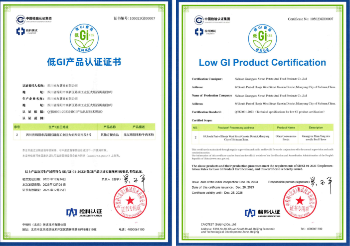光友32年打造薯類方便主食健康品質(zhì):光友薯業(yè)32年來,專做健康薯業(yè),在中國乃至世界把紅薯、馬鈴薯做成一大健康主食產(chǎn)業(yè)。光友薯業(yè)歷經(jīng)32年來,光友綿陽米粉低GI健康方便主食發(fā)布,是繼光友酸辣粉低GI健康方便主食后,又一個健康爆款產(chǎn)品上市。光友低GI健康薯類方便主食是經(jīng)光友薯業(yè)技術創(chuàng)新,經(jīng)國家權威檢測機構營養(yǎng)成分檢測和臨床試驗,取得低GI食品報告,由中國權威認證機構中檢科檢測后,為光友薯業(yè)頒發(fā)了光友綿陽米粉低GI健康方便主食認證證書,這是線上線下各位領導、嘉賓、朋友,關心支持光友32年來共同取得的成果!