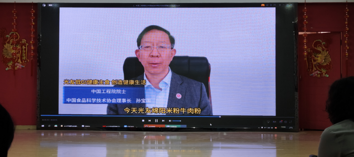 中國工程院院士、中國食品科學技術協(xié)會理事長孫寶國發(fā)來視頻祝賀《光友低GI健康主食 創(chuàng)造健康生活》:“2023年6月我和其他食品科學家一起應邀到光友薯業(yè)參觀考察及成果評價,看見光友薯業(yè)32年專注薯類健康方便主食產(chǎn)業(yè),我們都很感動。光友薯類方便米粉是由鄒光友為課題負責人,研發(fā)完成國家十三五薯類方便主食中的一項重大成果,我多次組織技術成果評價,均評價為國際領先水平。今天,光友綿陽米粉牛肉米粉獲得低GI健康食品認證,并召開新聞發(fā)布會向全球推廣,這是食品行業(yè)的一大喜訊,向光友薯業(yè)表示祝賀!”。