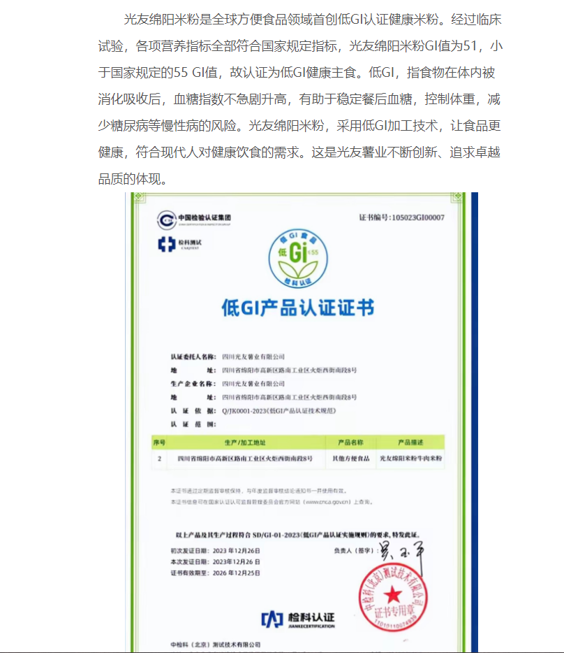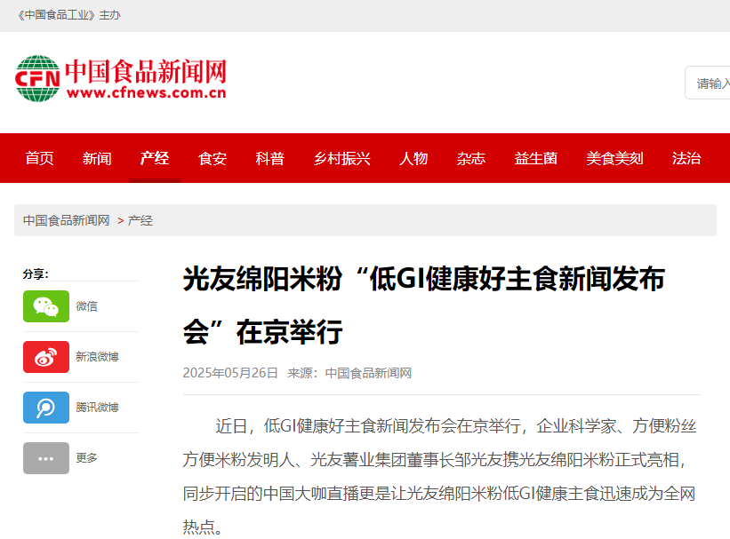 轉載中國食品新聞網——光友綿陽米粉“低GI健康好主食新聞發(fā)布會”在京舉行
