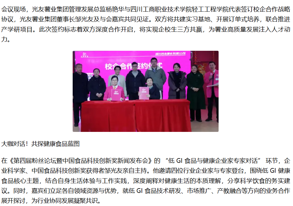轉載鳳凰網 第四屆粉絲論壇暨中國食品科技創(chuàng)新獎新聞發(fā)布會在科技城召開