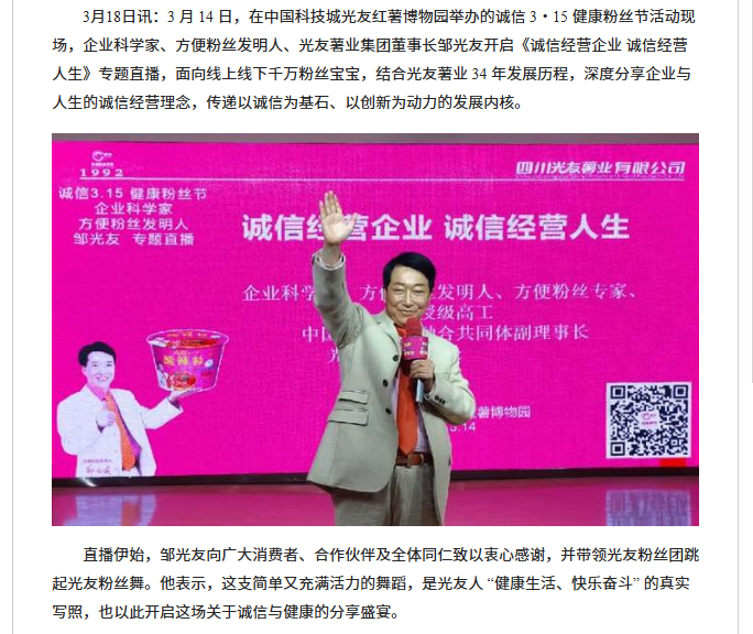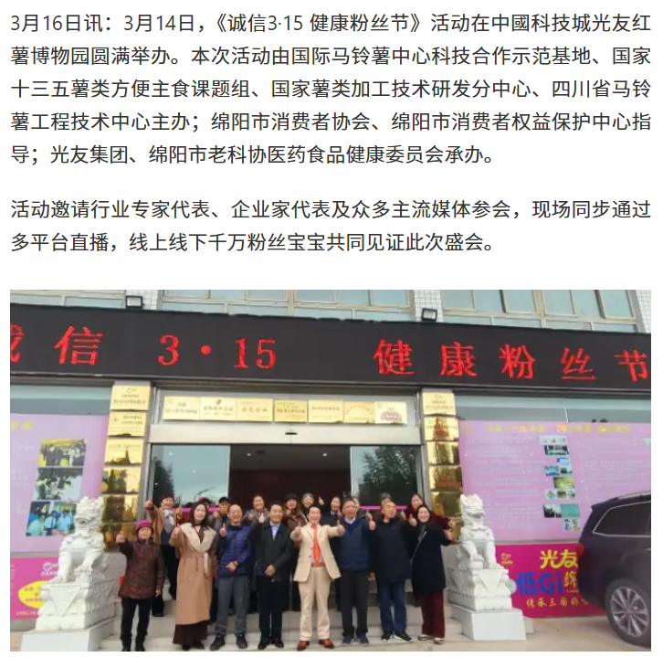 轉(zhuǎn)載網(wǎng)易新聞 誠(chéng)信3·15健康粉絲節(jié)在光友紅薯博物園舉辦
