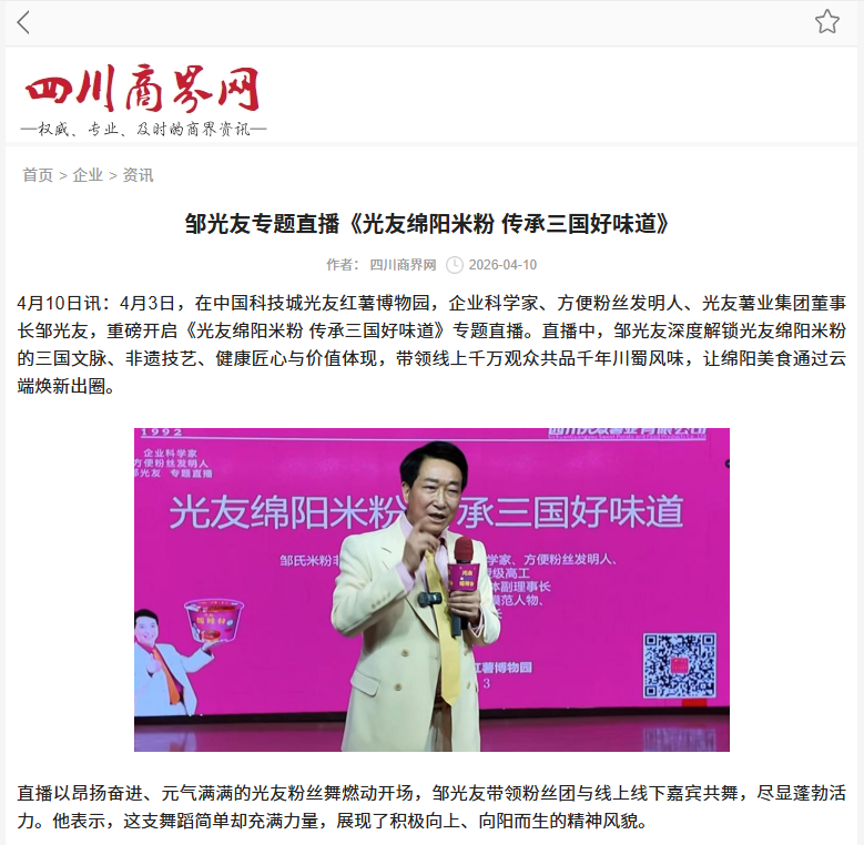 轉(zhuǎn)載四川經(jīng)濟(jì)新聞網(wǎng) 鄒光友專題直播《誠(chéng)信經(jīng)營(yíng)企業(yè) 誠(chéng)信經(jīng)營(yíng)人生》
